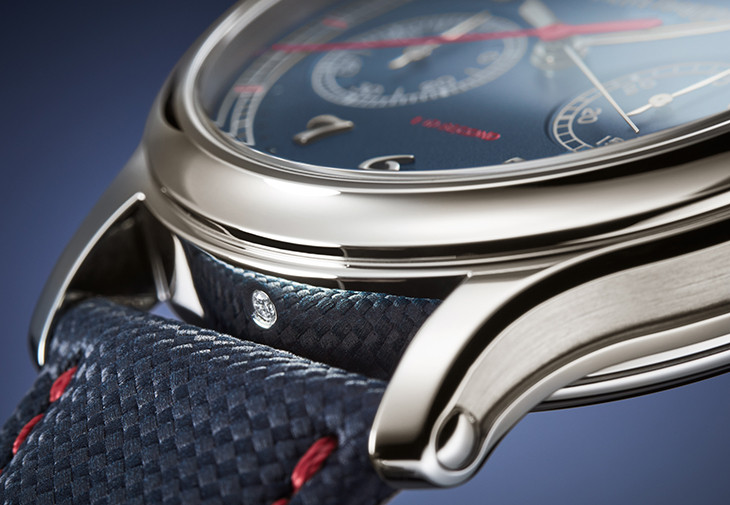 機芯在鉑金錶殼中滴答運作,搭配藍色錶面,加添紅色元素點睛。全錶流露運動氣息,突顯技術精湛與性能為本的設計特色。新款十分之一秒單按鈕計時秒錶以少量形式登場─製作難度與陀飛輪、三問及雙針計秒計時秒等腕錶不相伯仲。品牌在頂級複雜功能上帶來新意,將吸引鑑賞家及鐘錶愛好者注目喝采。
