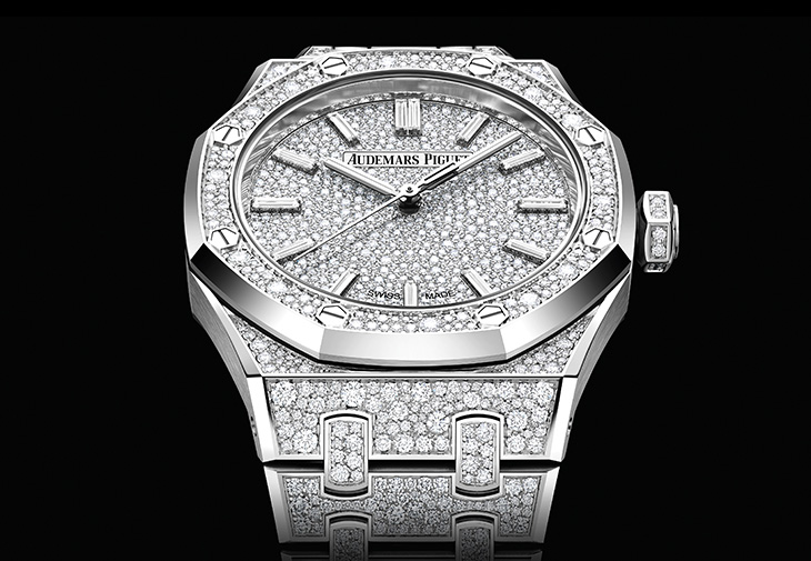 詩意雪花鑲嵌 愛彼皇家橡樹系列自動上鍊珠寶腕錶34mm、37mm