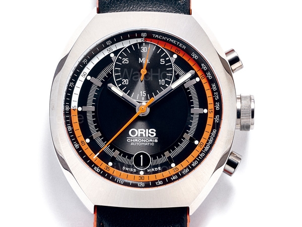 有別於充滿力道的現代設計,ORIS的這款Chronoris隱藏錶耳的鮑魚殼設計,很明顯地可嗅出其中復古端倪。設計靈感來自於1970年代品牌第一款為賽車所設計的錶款而來。內裝由7750修改成的Oris 672自動上鍊機芯,保留12點鐘位置的30分鐘積分盤,並只在六點鐘開設日期窗,維持面盤的古典單純。大錶冠有較好的操作手感,同時品牌也在此裝配快速上鎖機制,轉動半圈即可鎖定或開啟使用,兼具便利與安全性。