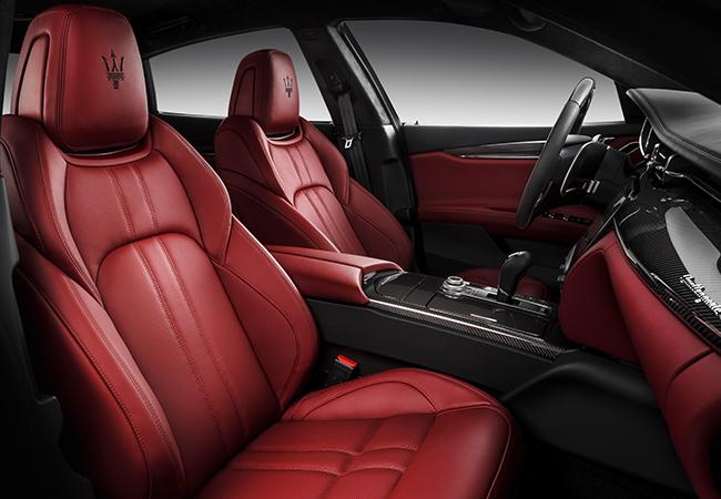 有別於GranLusso風格套件的典雅內斂,2018年式Quattroporte GranSport座艙則是充滿強烈的賽車氣息。與外觀呼應的高光澤黑色鋼琴烤漆飾板,搭配跑車座椅與全車頂級皮革內裝,讓駕駛人一入座就想躍躍欲試,此外跑車踏板和鋁質換檔撥片的加持,更增添性能風味。Maserati亦導入高光澤碳纖維飾板、碳纖維三輻式跑車方向盤、碳纖維換檔撥片和碳纖維迎賓踏板等全套碳纖維材質內裝套件供買家選用,讓全車從內而外都具備與眾不同的轎跑風範,展現不落俗套的奢華運動風格。