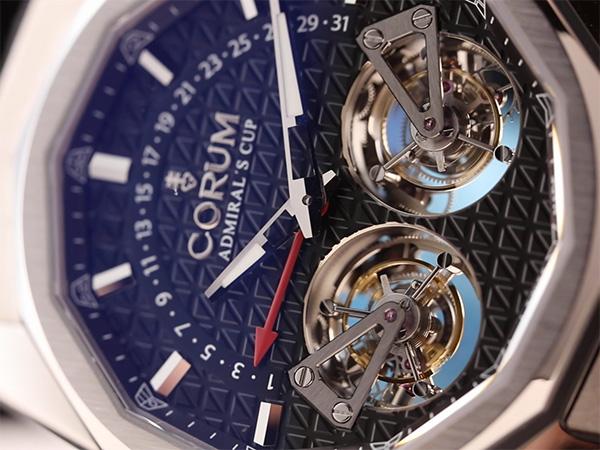 林崧濤目前手中有20只陀飛輪腕錶,只要有特色,並符合個人審美風格的陀飛輪,他都有興趣納入收藏。除了主流品牌之外,這回他還帶了兩只CORUM崑崙的陀飛輪腕錶來。第一只是海軍上將60周年限量陀飛輪腕錶,面盤和機芯基板都只做了3/4,陀飛輪則像是獨立漂浮。