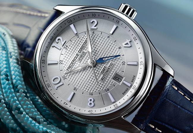 兩款全新康斯登Runabout賽艇系列腕錶皆配備小時、分鐘、秒鐘、日期與24小時GMT指示,並採用機刻雕花裝飾面盤及夜光刻度,體現一種經典、高雅的風格。而42毫米拋光不鏽鋼錶殼搭配透明底蓋,結合自製GMT模組的FC-350自動上鍊機芯,功能更加完整務實,可算品牌又一精彩力作。