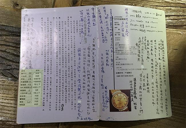 例如他對寶鉑陀飛輪的解讀是“寶鉑的陀飛輪像自由的飛鳥,對抗地心引力。”如果不是真心愛錶,很難有這樣的感觸與想像。採訪當天陳金芳帶來的《古今名錶鑑賞》裡,寫著密密麻麻的筆記,記錄了玩錶的成長歷程,也反映著他的熱情。