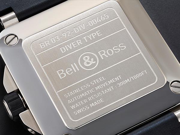 可以設定短時倒數計時,可以計算氧氣筒含量的的旋轉錶圈,是潛水錶的重要設計。分為旋轉內圈與單向旋轉外圈兩種類項,就理論上,另以錶冠設定的旋轉內圈較不會因為意外碰撞而使得設定偏移,進而危害潛水者。但因為錶冠細小,相對操作不易(尤其是戴手套後),因此可以直接轉動的單向旋轉錶圈成為潛水錶的主流。全新的BR03-92潛水錶也選擇了選轉外圈的配置,不同於之前的BR02的旋轉內圈。使用的便利是考量之一,另外則是因為如此設計在外型上會與品牌設計特色更契合。而厚達2.85mm的藍寶石水晶錶鏡,想來也是為了對抗可能面對的強大水壓而設計。