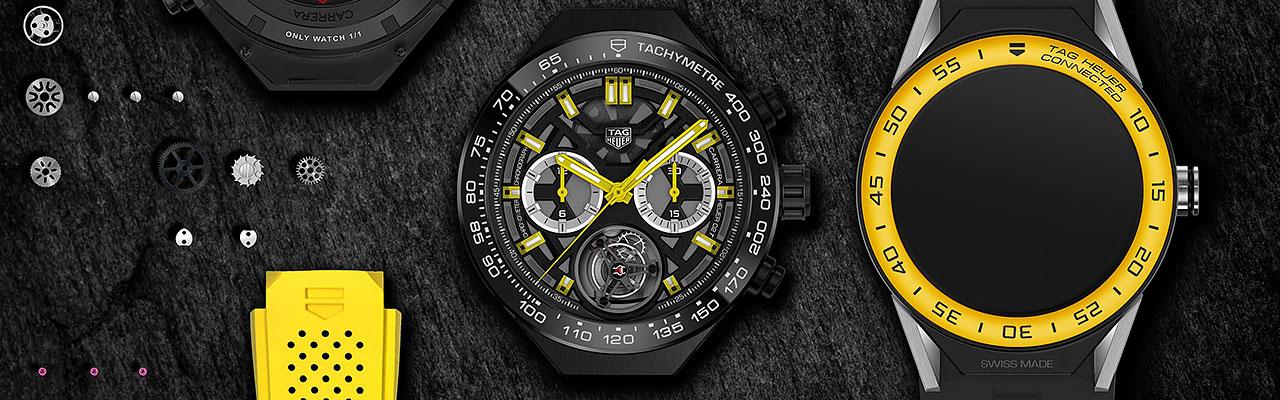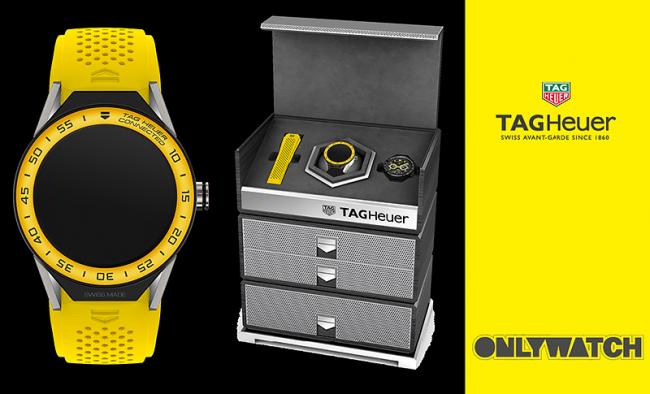 TAG Heuer Connected Modular 45智能腕錶,擁有純正的瑞士高級腕錶血統,Only Watch版本使用黃色錶帶與錶圈,並搭載Intel技術,防水性能達50米,具備全球定位系統(GPS)和近距離無線通訊(NFC)的電子支付功能(可使用Android Pay)、高畫質AMOLED螢幕與無數的TAG Heuer客製化錶面選擇。Google的Android Wear 2.0與全新的TAG Heuer Companion行動應用程式帶來更進一步的軟體使用經驗,讓您與最在乎的人事物緊密連結。
