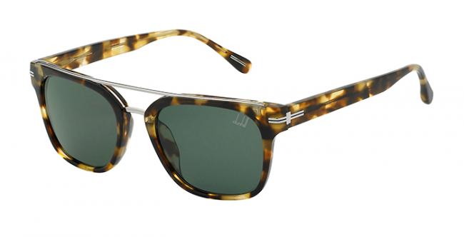 2017春夏系列中的重點款式展現了復古元素與現代細節的顯著融合。寬闊的方形鏡框由精緻的蜜糖色玳瑁醋酸纖維製成,雙層金屬鼻樑架設計,風格鮮明。dunhill精緻的長尾logo標識中的雙“L”,被巧妙融入鉸合部位,成為連接鏡框和鏡腿的標誌性細節。