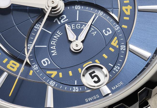 回歸到2017年的Marine Regatta,最特別之處在於中央計時秒針的逆時針倒數功能,搭載的新機芯UN-155以UN-153改制,是隸屬UN-150機芯家族新成員。一般來說,專門製作給正規帆船賽事使用的錶款,都會具備十分鐘的倒數計時功能,因為帆船賽事進行分站賽時,大多是以群發賽(Fleet Race)的形式進行,參賽的帆船們聚集在海面上等待出發,不像地面上的賽事會有固定的起點線,帆船賽事是以點與點相連的浮標進行指示,在比賽開始前的5、7或10分鐘開始進行倒數,之後便開始進入比賽。