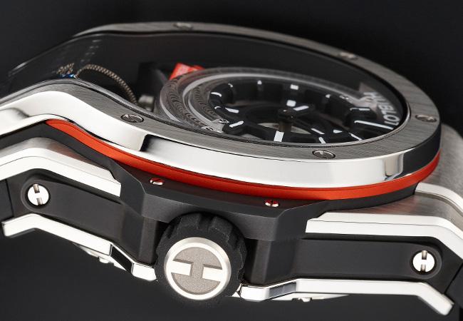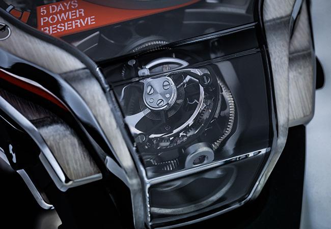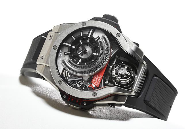 直徑49mm 鈦金屬錶殼,不鏽鋼錶圈/時間指示,日期顯示,動力儲存指示,雙軸陀飛輪機制/MHUB9009.H1.RA手上鍊機芯,五日動力儲存/藍寶石水晶鏡面,透明底蓋/防水30米/限量50只/參考價NTD 5,232,000