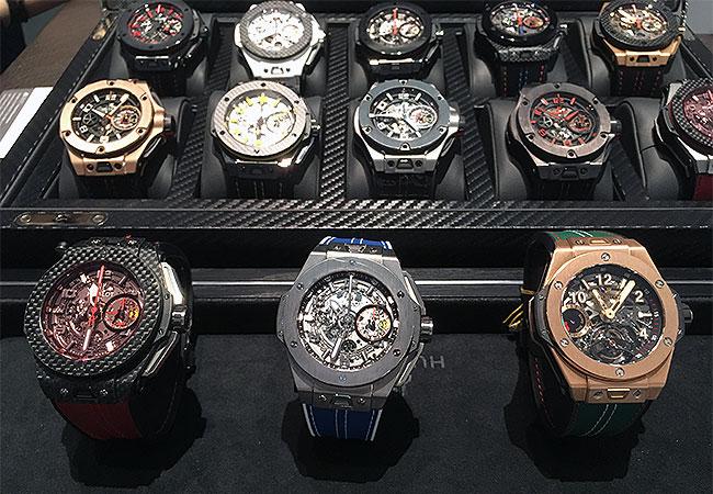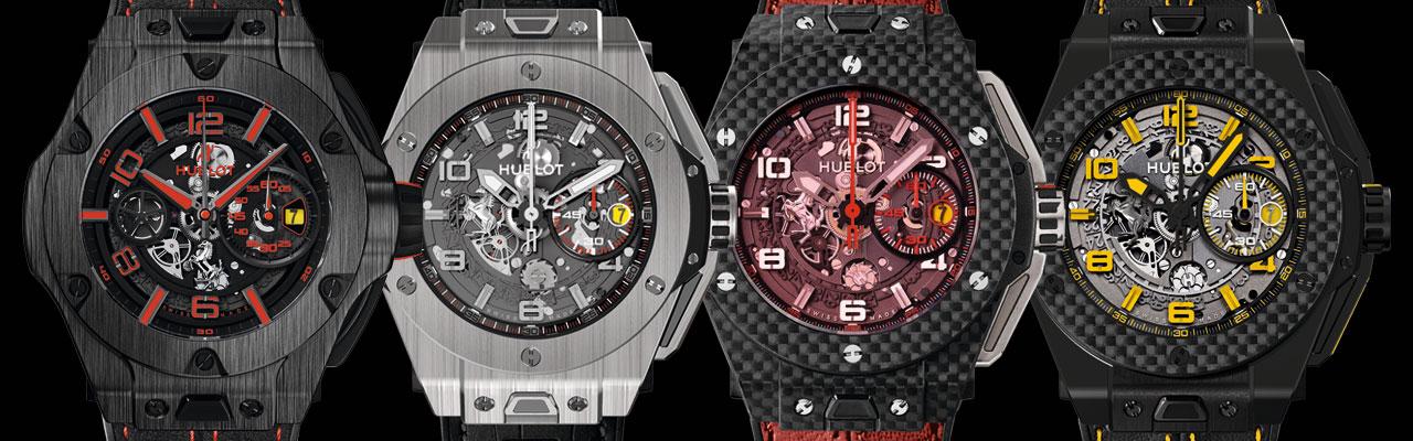 HUBLOT宇舶的融合藝術海納百川,不只將專業製錶與運動、藝術等等各方面合而為一,同時與著名超跑FERRARI法拉利的合作也是由來已久,自2011年起,每年都有新款推出,這個系列不只是宇舶與法拉利的融合,而且還使用了各種材質打造,包括業界較常使用的鈦金屬、碳纖維之外,還有宇舶獨家的魔力金Magic Gold、皇金King Gold等等,更有難以製造的藍寶石水晶錶殼。機芯大部分都是宇舶自製的Unico計時機芯,最具創新的則是自2013年起陸續發表的HUBLOT MP-05 LaFerrari腕錶,從機芯到外型都別具一格。
