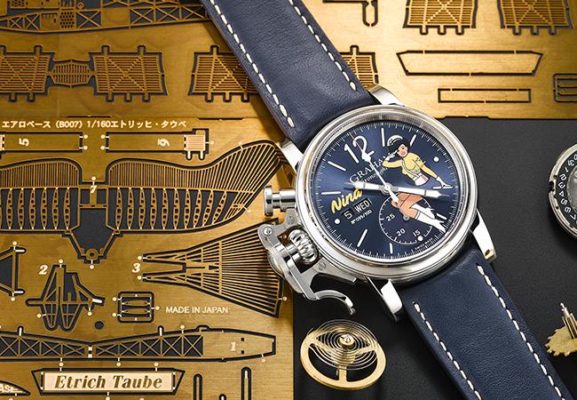 Chronofighter Vintage Nose Art並不是格林漢首度在腕錶上妝點女性圖騰,早先的Chronofighter 1965,在錶背就雋刻過春宮圖。但此款的耐人尋味,除了在面盤彩繪著有塗鴉、漫畫風格的女性圖案,更在於格林漢此舉是為了強調錶款的軍事元素!