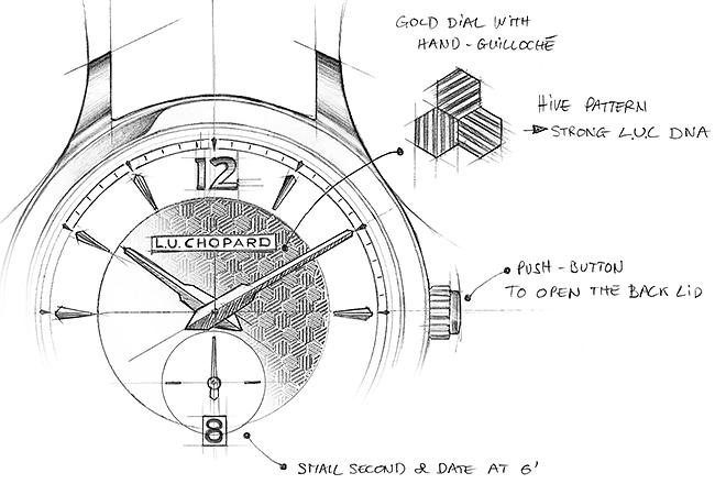 因此,那時期的蕭邦錶不論是在機芯上或在底蓋內側,都鐫刻了飛舞著蜜蜂的蜂窩。也因此,當蕭邦錶廠於1996年開立時,卡爾-弗雷德里克‧舍費爾(Karl-Friedrich Scheufele)先生選擇再次採用這極具象徵意義的圖案,將它運用在L.U.C系列(本系列名旨在向蕭邦創始人致敬)的部分錶款上。L.U.C XPS 1860 Officer腕錶的底蓋內側再次採用蜂窩與蜜蜂的手工雕刻裝飾,此裝飾以隨機方式排列,因此也使每一枚腕錶都舉世無雙。
