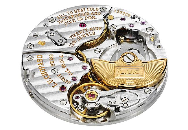 L.U.C 96.01-L機芯的自動上鍊系統是由22K金雕飾微型擺陀給予動力,因此其強而有力的慣性賦予機芯最佳的動能效率。微型轉子供能量給採用蕭邦Twin專利技術配備的疊置同軸雙發條盒,睿智的整體上鏈系統能確保高達65小時的儲存功能,它也使這枚96.01-L機芯能夠以天文臺精密時計的精準度運作。