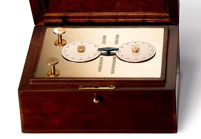 1821年,法國製錶師Nicolas-Mathieu Rieussec發表他所製造的計時器,它的作法很有趣,秒針由兩個零件組成,中間有一個墨囊,按下起動開關之後,墨囊會開始流出墨汁,在面盤上顯示出痕跡,就像是把一支可以控制出水與否的鋼筆綁在指針上,讓鋼筆畫出筆跡,只要循著痕跡,就能計算出經過的時間長度。