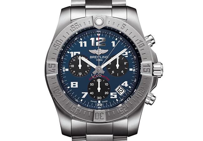 這款新錶款推出了兩款不同顏色的面盤 ─ 黑色面盤搭配青灰色累計計時器,以及藍色面盤搭配黑色累計計時器,並有鈦金屬鍊帶,以及皮錶帶或橡膠錶帶以供選擇。堅固新穎的外 觀設計搭配全新百年靈自製“引擎”,由內而外盡顯不凡魅力。