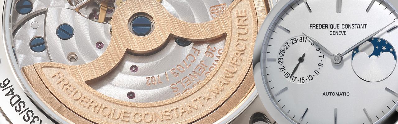 此款內裝FC-702自動上鍊機芯,機芯夾板的拋光嚴謹,鏤空鍍金自動盤,更顯精緻。結構大致與703相似(差在月相與日期佈局),零件互通有無,因此夾板上標示兩者型號,取大量生產控制成本的優勢。