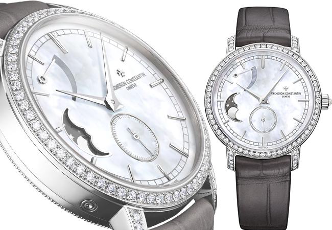 Traditionnelle 小型月相動力儲存腕錶以柔和的氣質呼應月相盈虧的韻味,錶殼線條傳承系列一貫的樸實簡練,但透過鑲鑽錶殼與珍珠母貝面盤,展現令人心動的華美。月相落於面盤八點與九點之間,微微偏離常軌,有別一般的四平八穩,帶來趣味的視覺。