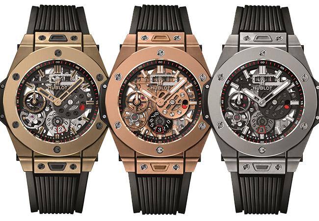 Big Bang MECA-10腕錶共推出King Gold 皇金款,鈦金屬款,Magic Gold 魔力金款和魔力黑陶瓷款。兩種款式同樣具備鏤空面盤與藍寶石水晶透明底蓋,無論從正面或背面都能欣賞到機芯的精巧結構。