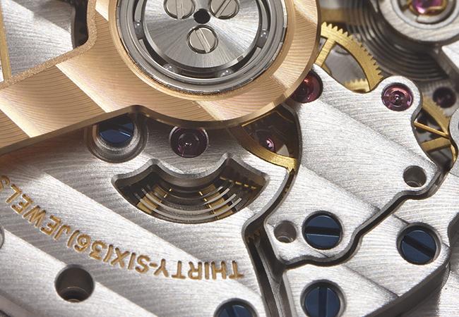 為了達到跳秒成果,積家在擒縱輪下方增加了一枚星狀齒輪,在秒針軸旁也加入一枚附加游絲。其邏輯則有點類似恆動機制。機芯振頻每小時28,800轉,每秒振動八次,而星狀齒輪會在吸收八次振動後,才釋放儲存於附加游絲中的能量,驅動秒針步進一格。此外,結構穩固,因此指針不至因為跳停而晃動,能精確地指出時間。