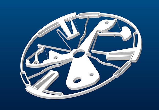 全新振盪器取代調速機構,一體成形並採用比髮絲更細的單晶矽打造而成。因此,由三十多個零件組成的標準調節機構,會被厚度僅0.5毫米的單一機械取代,不但比原本的5毫米輕薄許多,更節省了組裝、調整、設定、測試及潤滑等步驟。