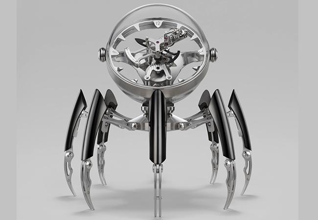 Octopod的設計由MB&F發想,再由瑞士頂級鐘錶製造商L'Epée 1839操刀製作,底下八隻內建關節的腳爪讓Octopod 能時而站立時而蜷伏。每隻腳能個別調整高度,使得 Octopod 就算在最崎嶇的表面也穩穩立足,宛若一隻真正的章魚。然而,真正的鐘錶技法與祕辛,皆蘊藏在Octopod完全透明的「圓頂」中。
