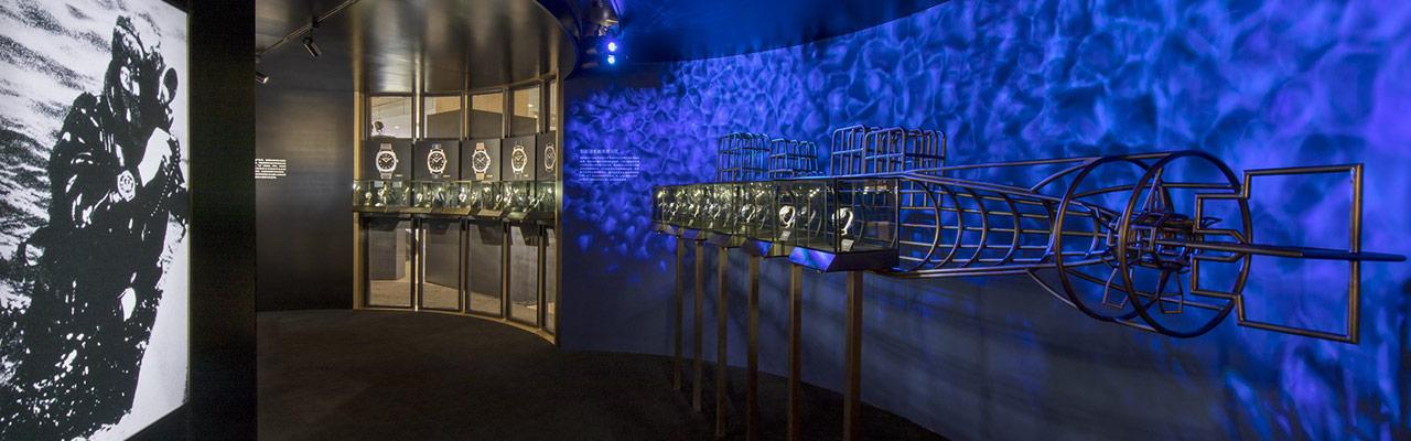 創新潛水腕錶展示區中最奪目的是,設計靈感源於昔日海軍執行軍事任務時駕駛的魚雷造型陳列 櫃,寧靜的氛圍讓人仿佛置身深海之中。六款全新的Sumbersible專業潛水腕錶展示其中,錶殼直徑為42毫米及47毫米,且每款材質皆顯不同巧思-傳統經典的不銹鋼、盡顯優雅風度的紅金、堅固卻較為輕盈的鈦金屬、具有獨特紋理外觀的創新CarbotechTM、綜合性能優異的BMG-TECHTM。特別值得一提的是其中饒富個性的青銅材質,靈感源於帆船上常見的青銅元件,將沛納海與大海的淵源 展現得淋漓盡致。