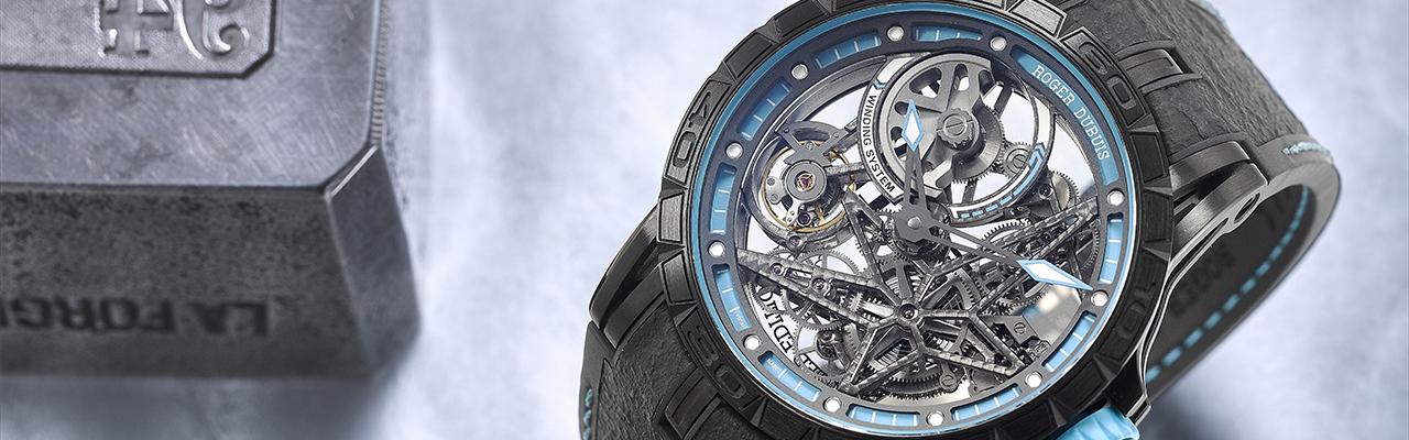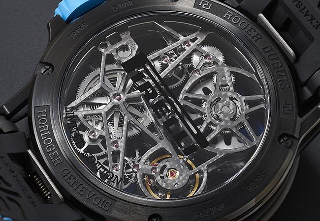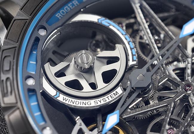 配戴冠軍榮耀 ROGER DUBUIS Excalibur Spider Pirelli 鏤空自動腕錶