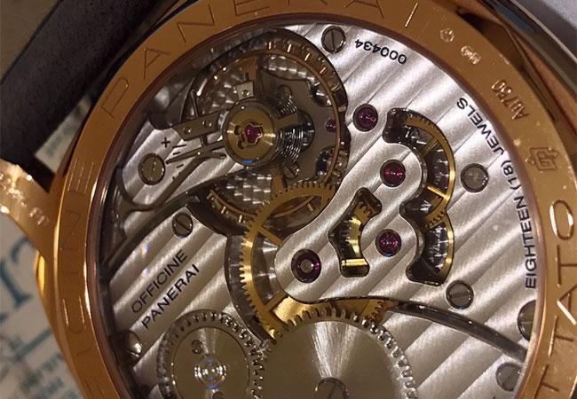 PAM399 & PAM398的絕美 極大部分來自於 Minerva機芯,美麗打磨與稀有絕版的Minerva機芯,還有Minerva機芯獨特具有魔力與生命力大音量的運作聲響,就這樣PAM398紅金的美就這樣靜靜擱置在我腦中一年一年的過去了。