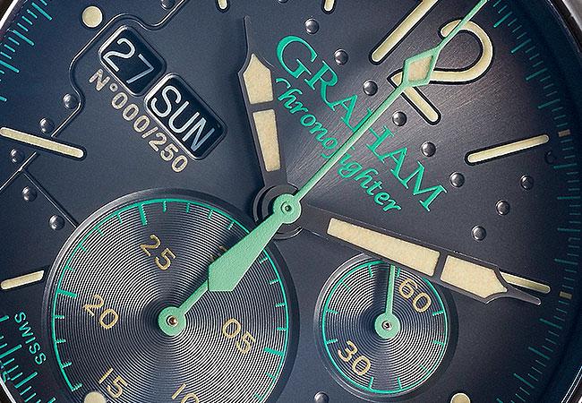 2017年新發表的 Vintage AirCraft融入古典韻味。以1940年代的飛機為靈感,有別於大多以飛行為主題的錶款會以飛機儀器或機種特色作為靈感,GRAHAM則把眼光拉大到整架飛機,以飛機外殼的板金為主題,將其特徵重現於腕錶面盤上。