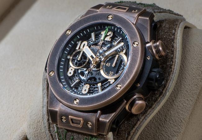 Big Bang巴伐利亞青銅腕錶為Big Bang錶殼首次利用青銅材質,青銅具有非磁性、耐腐蝕和外觀獨特的優點;天然的包漿塗層附於其上,使其免於空氣侵蝕,呈現特殊視覺效果。