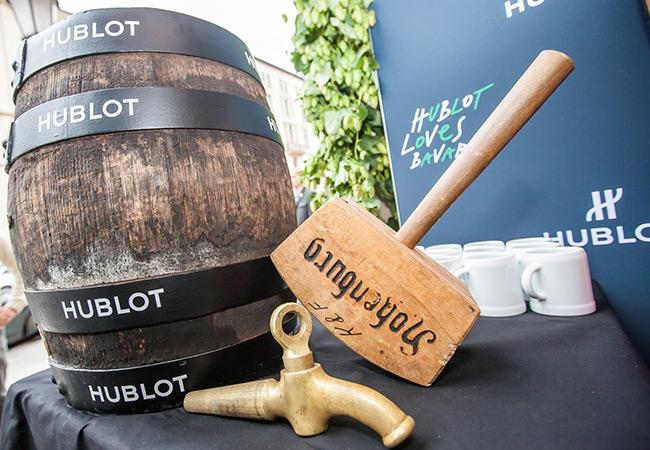 Big Bang巴伐利亞青銅腕錶採用Hublot自製UNICO自動上鍊飛返柱輪計時機芯,共有330個組件,動力儲備72小時。遵循慕尼黑啤酒節的傳統風俗,Hublot慕尼黑專賣店正式於下午16點揭幕Big Bang巴伐利亞腕錶,並以特殊的啤酒節儀式為該腕錶揭幕,用木槌敲擊啤酒桶,讓四溢的啤酒花綻放祝福。