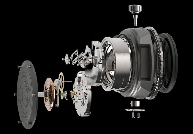 在高度與氣壓顯示之外,十二點鐘位置,設計動力儲存顯示裝置,讓使用者掌握65小時動力使用資訊。基於品牌挑戰既有現狀、突破傳統思維的傳統,動力儲存顯示裝置,也絕對非凡。它的設計不會影響機芯運作,且以最精準、精確的元素來執行,也因此更為可靠。一般來說,一枚裝置使用的元件越少,就越不容易異常。在 Bivouac 9000內的動力儲存機制,旋入系統更新、調整,可以完美因應錶款的需求。對於總是驅策自己超越體力與心智限制的登山者而言,快速檢視Bivouac 9000能否正常運作,是非常重要的資訊,小秒盤位於九點鐘位置,提供這項功能。另外,配戴者可以用位於六點鐘位置的日期顯示,等待下一次探險時光。