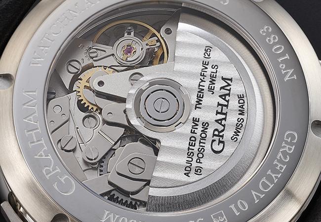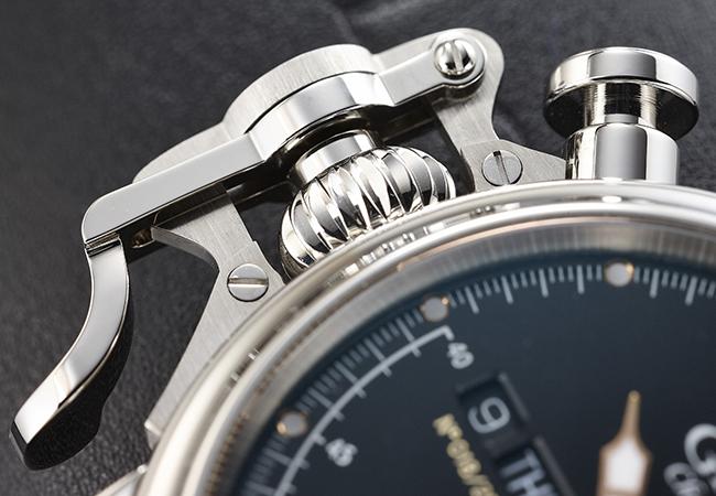 最後要注意的是,考量巨大的計時按把會影響配戴感受,因此格林漢將機芯轉動180度,使錶冠移至九點鐘位置。也因此所有相對位置都會有所變化。一般位於四點鐘位置的歸零按鈕,改到了十點鐘位置(因為如此,其實格林漢的計時並不能算完全的單按把)。計時按把與調校錶冠合一,主要的影響則是若想要手動上鍊,轉動的方向也要反轉。不過,這是一款動力儲存48小時的自動上鍊腕錶,作為日常配戴,需要手上鍊的機會並不多就是。