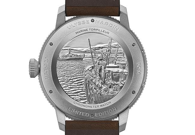 另一款是別緻的黑色錶盤,配以豔橘色阿拉伯數字時標和夜光指針,確保在黑夜中能輕易地讀取時間;並搭配附有與時標同色縫線的黑色錶帶。兩個版本均具備一個特大錶冠,以及一個經過噴砂處理的44毫米鋼質錶殼,防水達50米,錶背印有一艘獨特的魚雷艇。