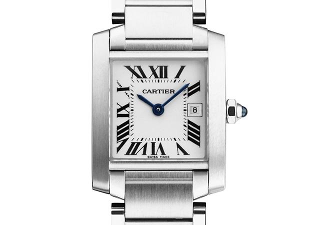 1996年誕生的Tank Française腕錶,不僅掌握嚴謹比例,設計出完美的正方形,其弧形錶殼與錶帶更合而為一。卡地亞悉心處理兩側垂直的錶耳端,經斜面處理,呈現柔和的角度,錶鍊鍊節內縮,猶如坦克履帶,整體造型設計呼應其法國坦克靈感原型。