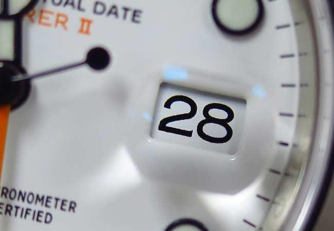 另外,現在的ROLEX勞力士蠔式錶款的鏡面內側、外側都沒有鍍膜,卻在日期放大鏡做了鍍膜處理。小編推測鏡面沒有鍍膜可能是考量到耐用度的問題,畢竟耐用、精準是勞力士能歷久不衰的兩大支柱。鏡面雖然會反光,但手腕稍微轉一下位置就能避開,對識讀的干擾不是那麼大。不過日期放大鏡的面積小又有弧度,若沒有防眩確實不容易看清楚,干擾程度較大。據說,放大鏡的鍍膜是做在內側,也就是放大鏡和鏡面黏合之處,那是個碰不到的地方,不會有刮傷受損的風險。(更新:2019年勞力士發布的資料說,放大鏡是雙面鍍膜。)