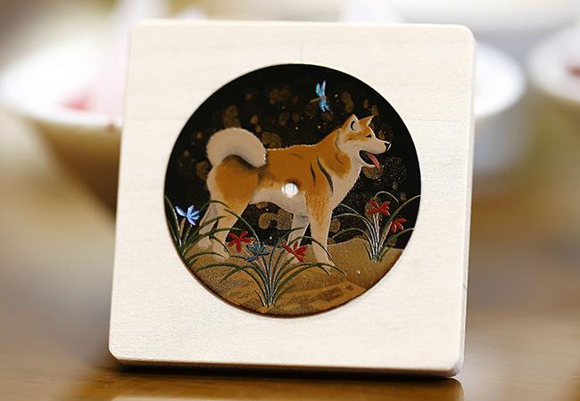 屬狗的人是極具行動力的建造者,也是忠貞不渝的保護者。蕭邦決定選用一種體態優美均衡的亞洲犬種「秋田犬」來體現這種慷慨大方、忠誠的精神。茂盛的野生蘭花伴著秋田犬,一片祥和的自然景色中飛過一隻蜻蜓,蜻蜓猶如幸運符,是預言幸福快樂的象徵。