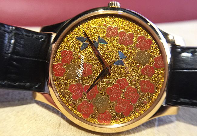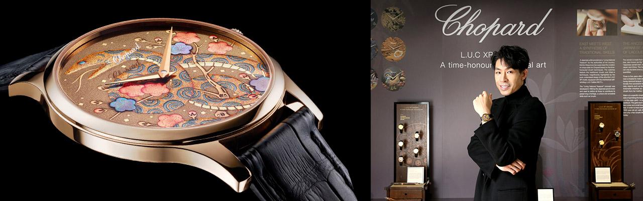 蕭邦L.U.C XP蒔繪腕錶系列率先將這項珍貴的漆繪工藝引入錶盤裝飾之中。早在2008年,蕭邦就先行製作了漆繪腕錶,但僅在日本市場推出。如今,蕭邦漆繪珍品以不同錶盤設計主題精緻呈現,錶盤設計由漆藝大師增村紀一郎先生親自顧問指導,而完整地繪製及金粉裝飾部分則由日本皇家御用,同時也享有國寶之稱的漆器製造商山田平安堂(Yamada Heiando)精心製作。