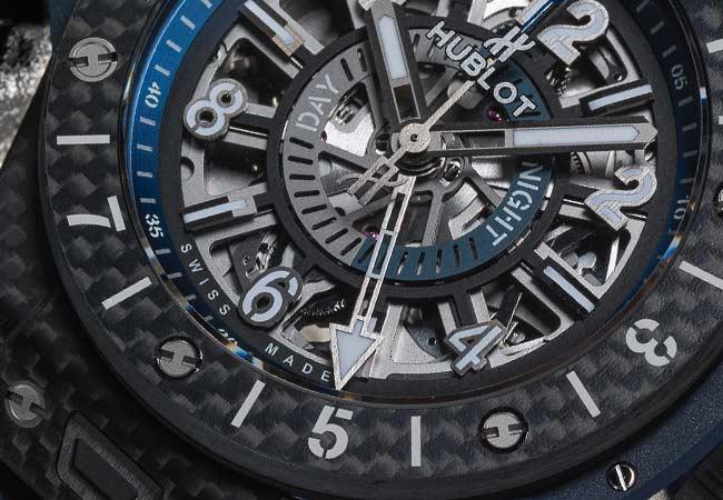 採用12小時制原居地(第二地)時間的腕錶還需要搭配原居地的日夜顯示,這樣才能在出國時,知道原居地是白天還是晚上,而不會在三更半夜打電話回家打擾到熟睡的親友。日夜顯示的方式有很多種,然而,Big Bang Unico GMT兩地時間腕錶卻另闢蹊徑,不與人同。
