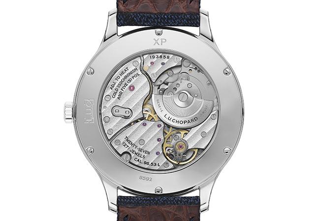 微型自動盤採用堅固耐用、具高密度特性的鎢鋼製造,讓機芯的上鍊運作更順暢準確。透過透視錶底即能一覽機芯全貌,黑色的鐫刻設計讓這款兼容現代精神與精準可靠性能的時計更臻完善優美。L.U.C XP錶款突破高級腕錶的傳統設計風格,不論在任何時刻場合佩戴都很完美,它絕對是男士們不可或缺的必備配件。