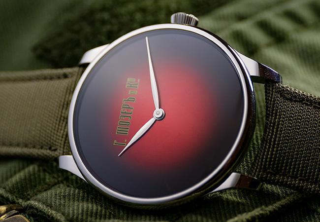 亨利慕時的煙燻面盤一直以來讓小編看得目眩神迷,即便沒有複雜的功能或華麗的裝飾,但光就其反射出來的光澤就夠美了。它的煙燻面盤有藍、有綠也有接下來要看到的紅色面盤。Venturer XL Stoletniy Krasniy腕錶是紀念俄國發生於1917年的十月革命一百周年所推出的紀念款,其中的krasniy是俄羅斯中的經典紅,也與俄語的“美麗”同義。面盤刻上品牌原始的斯拉夫語標誌,增加了它的紀念價值。