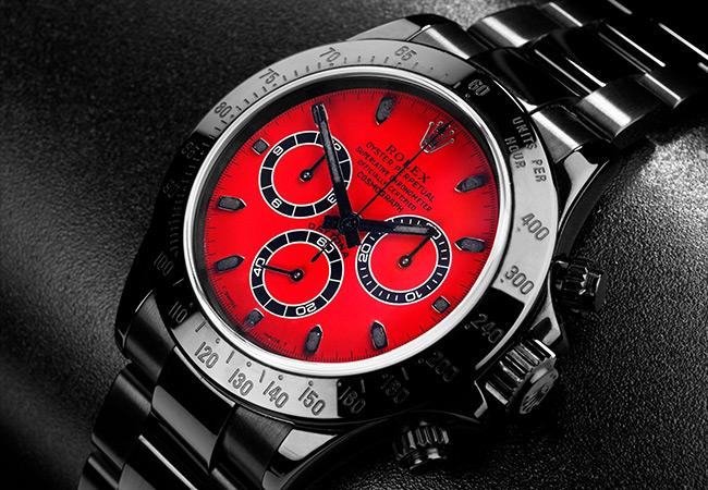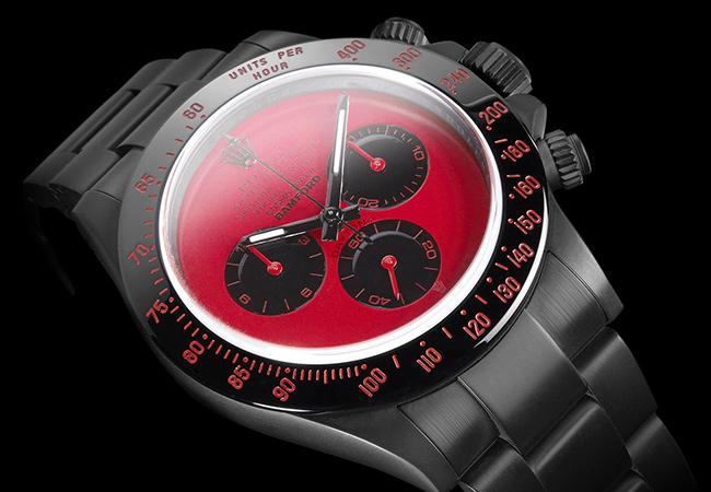 腕錶直徑40mm,錶殼與錶帶皆覆以類鑽碳(DLC)鍍膜,強悍耐刮,呈現出來的色澤也相當具有質感。至於外面改潮改炫,內部機芯也會跟著調整嗎?答案是No!這麼好的勞力士機芯怎麼能換掉呀!這款紅面Daytona同樣搭載4130自動上鍊機芯,COSC認證,每日誤差正負兩秒的嚴格標準,在享受酷炫外觀的同時,內部品質沒話說!