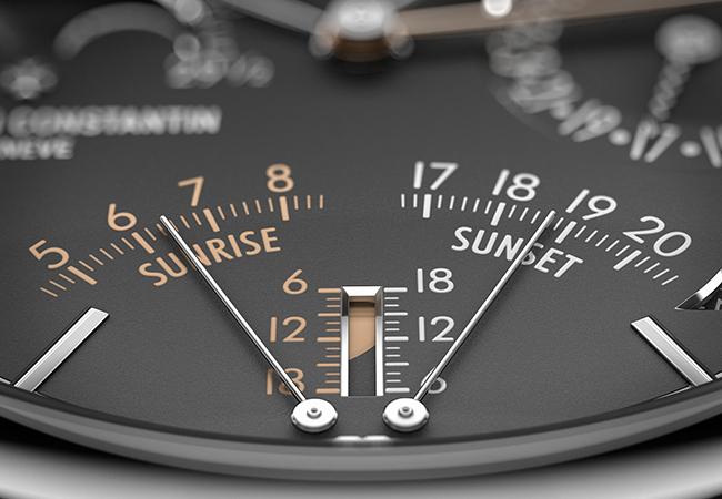 另一項成就包括「僅」以較少的512枚零件,架構出以天文為主要設計訴求的機芯結構,這或許得歸功於江詩丹頓以名為"Tropical"輪系控制太陽時相關功能,其中包括如真太陽時、月相月齡、時間等式、日出日落、晝長夜長、季節、二至、二分點和黃道十二宮、潮汐指示、太陽地球月亮位置,錶殼背面的北半球透明星空圖、恒星時顯示等等,當然也搭配著必要的萬年曆及提供精準的陀飛輪裝置。