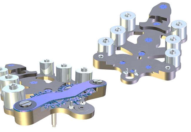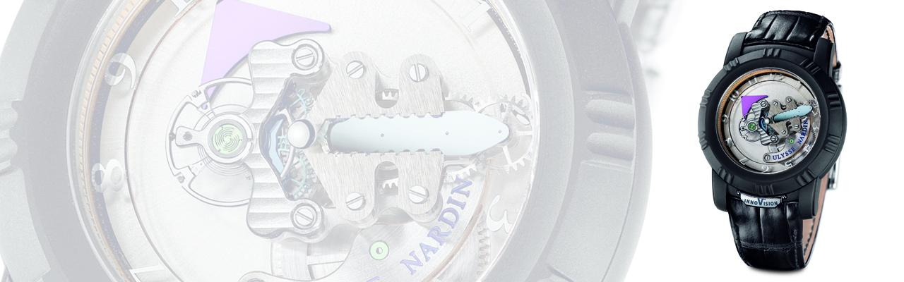 早在2001年,矽材質還沒開始鋪天蓋地席捲鐘錶界之前,雅典ULYSSE NARDIN就已經推出矽材質雙向擒縱裝置(Dual Direct Escapement)的Freak奇想陀飛輪,錨式擒縱叉和擒縱輪不需靠紅寶石減低摩損,也不需要再上油,動力會經由兩個擒縱輪直接傳送至擺輪,由於擒縱輪使用的是矽材質,因此他們的硬度高、重量輕、彈性好而且完全抗磁。