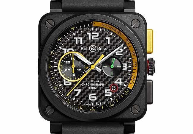 BR03-94 RS17計時碼錶是三款作品中設計相對樸素的一款。抗刮耐磨的陶瓷錶殼,搭配碳纖維面盤,這兩種材質因為輕巧堅韌,本就是賽車工業會運用的材質。用於錶殼上,更有呼應之感。而為了強調錶款的運動性格,無論是RS16或是RS17皆具備計時碼錶功能。講究速度與精準的計時碼錶,與分秒必爭的賽車賽事,當然也有著直接連結。