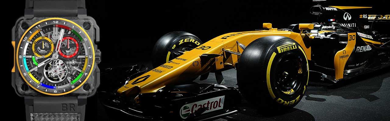 腕錶與賽車之間向來有著密切連結,其中原因,或許是出於彼此都是對機械極限的精密追求。而以飛機儀表板奠定形象的BELL & ROSS柏萊士,也踏入此一領域,更在2016年成為雷諾一級方程式車隊(Renault Sport Formula One Team)的合作夥伴,柏萊士也以車隊在2016年出賽的賽車為名,發表BR-X1 RS16鏤空計時,與BR-X1 RS17鏤空陀飛輪計時腕錶,強調雙方合作關係。