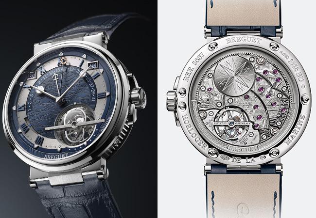 寶璣BREGUET的MARINE 5887腕錶可是寶璣近年來讓小編印象最深刻的一款傑作,它集合了萬年曆、陀飛輪,以及少見的時間等式,呈現方式也不墨守成規。萬年曆功能分布於面盤四周,其中日期以錨型指針逆跳方式呈現於面盤上半部,而時間等式凸輪設在陀飛輪框架上方,錶背還鐫刻法國皇家海軍一級戰艦「路易士皇家號」,整只腕錶處處都是焦點,也讓人讚嘆寶璣的製錶功力!
