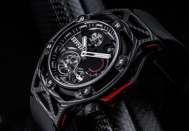 2017年宇舶錶HUBLOT與度過70歲生日的法拉利FERRARI推出了這款Techframe Ferrari 70限量腕錶,結合了陀飛輪與計時功能,並且將法拉利元素一一呈現於腕錶上,包含錶冠上的法拉利招牌駿馬logo,錶背上方則印有法拉利70周年的字樣。除了有形的圖案外,無形的設計則是將面盤部分鏤空呈現,設計出宛如引擎的樣貌,3點鐘位置的雙30秒計時盤靈感則來自於賽車儀表板;7點鐘位置是60秒飛行陀飛輪,11點鐘位置則是分鐘積算盤。另外錶帶採用快拆設計,按下按鈕後即可快速取下,十分方便。本款腕錶共推出有King Gold皇金、鈦金屬與PEEK Carbon聚合物碳纖維三種版本,分別限量70只,喜愛速度感的錶迷怎麼能錯過呢?