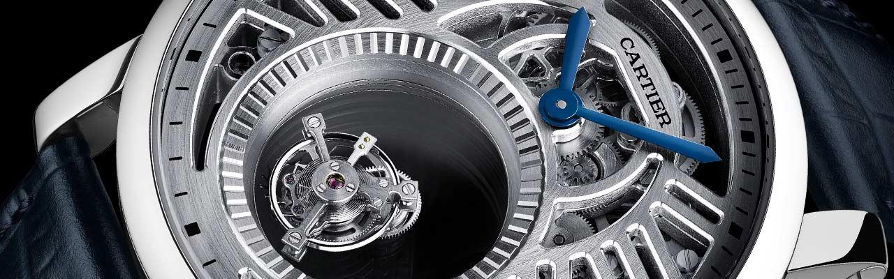 雙重神秘陀飛輪彷彿懸浮於空中,似乎與機芯的其他部分毫無連結;而這項設計於2013年在品牌位於拉夏德芳的工作坊誕生,代表卡地亞製錶歷史的重大里程碑。雙陀旋轉:陀飛輪每六十秒鐘轉動一圈,陀飛輪框架則以每五分鐘為一個周期進行第二重旋轉。除了要掌握平衡外,更需一絲不苟的精準度,才能完美融合輕薄錶殼與精湛工藝。
