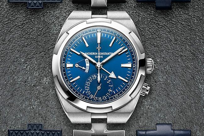 全新江詩丹頓VACHERON CONSTANTIN Overseas兩地時間腕錶,融合精湛技藝與實用性能於一體,搭載品牌自行研發並製造的機芯,可同時顯示兩個時區的時間,使用簡便,並配有三條可快速替換的不鏽鋼、鱷魚皮和橡膠錶鏈/錶帶。