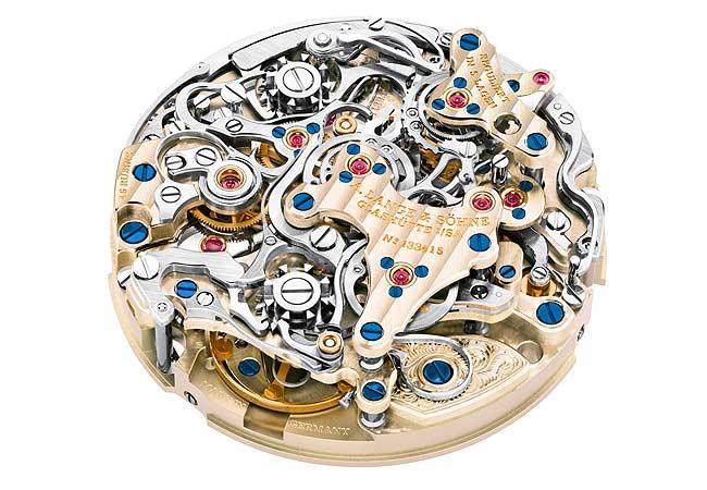 機芯設計確保分段計時和精確跳分積分盤的進程,皆不會對速率的穩定程度產生負面影響。由朗格研發並取得專利的分離齒合裝置,可防止以往無法避免的振幅流失。若腕錶沒有這項裝置,摩擦力便會隨追針功能啟動而減少。至於速度緩慢且持續旋轉的積時盤則不需要用到這項裝置。